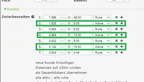 Das GA ist in dem Fall eher WarumUP natürlich. Und nein, ich will nicht 3mal nen neuen Lauf mit meiner Garmin startenHTS hat geschrieben:Den Wunsch, eine Trainingseinheit mehreren Trainingstypen zuzuordnen? Das wird nicht passieren. Die Trainingseinheit insgesamt ist entweder ein Intervalltraining oder ein Dauerlauf. Oder wenn du im Trainingsplan bestimmte Kombinationen von Intervallen und Tempodauerlauf hast, steht es dir ja frei, einen neuen Trainingstypen dafür zu definieren.