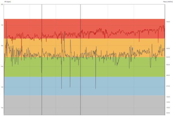Ansonsten ist der Kurvenverlauf sehr typisch für einen Tempolauf.