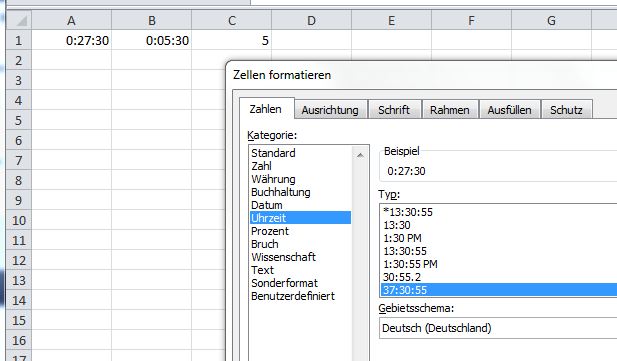 Wie Formatiere ich die Zelle im Zeitformat?