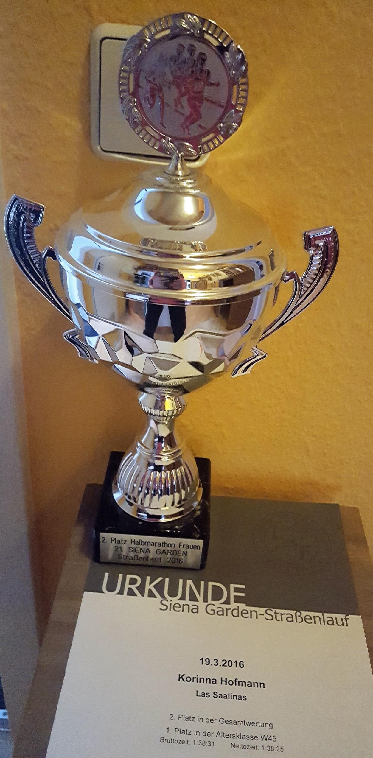 Danach der Versuch, mit der Brechstange die Bestzeit von HH in FFM nochmals zu toppen oder zumindest zu bestätgen, was mit 3:18 nur teilweise gelang. Ich betrachte das Rennen nicht als Fehlschlag, schließilch war ich 3 min schneller als meine bisherige Bestzeit in FFM und ich bin noch nie so schmerzarm in Frankfurt ins Ziel gelaufen, aber wenn ich die Frage Frankfurt ja oder nein? nochmals zu entscheiden hätte, würde ich jetzt nein wählen. Auch von mir erhoffte PBs über 10 und 5 km waren nciht mehr drin in der 2. Jahreshälfte.Den Thüringer Klassiker Cup, wo ich letztes Jahr Podiumsplatzierungen in Serie eingefahren hatte, habe ich mir dann auch irgendwann geschenkt, durch die Verletzung habe ich 3 Läufe der Serie verpasst, dann war es vorbei.Dafür immerhin noch zweimal ganz oben auf dem Treppchen gestanden, um dem Forumsspitznamen halbwegs gerecht zu werden, einmal in der 2er Staffel beim Erfurter Heimmarathon und dann noch bei einem kleinen 10 km Rennen in der Nordthüringer Provinz, wo ich mit 41:30 auch die Saisonbestzeit über die Lieblingsstrecke 10 k aufgestellt habe.
