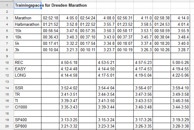 @Martin, ja lass die 1000er drin. Sind viel näher am HM- und M-Tempo als die 400er, und man sollte m. E. Pläne möglichst wenig umstellen.