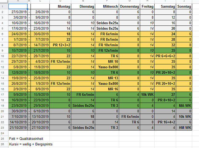 Tolle Basis. Und wenn man dann noch 16 Wochen hat... Vielversprechend.alcano hat geschrieben: Hier nun also die fehlende Wochen [...]. Letzte Woche fühlte sich das zum ersten Mal seit dem Marathon wieder regelmäßig richtig locker an. ...
