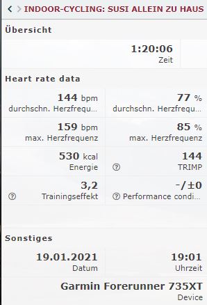 Motivationsprobleme habe ich keine. Im Gegenteil, irgendwie bin ich noch motivierter als sonst. Vielleicht liegt es daran, dass der Sport Kontinuität und Identität gibt. Und mich motiviert die Idee, die jetzige Zeit zu nutzen, zu investieren, Kilometer, TRIMPS und Ausdauer zu sammeln und aufzubauen und wenn alles vorbei ist, mit einer Bombenfitness an den Start zu gehen :-). Außerdem reizt mich ein IRONMAN und das motiviert noch mal extra