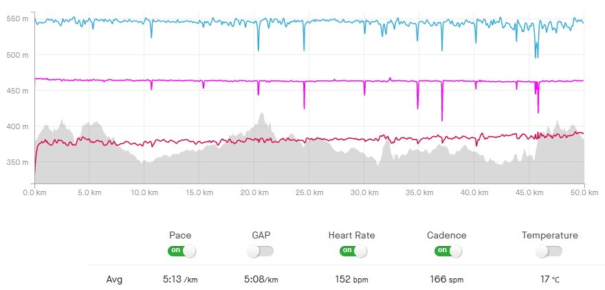 Do: mo 12,12k @4:51, darin 3 Steigerungen + 5k @4:21; na 70' Rad @178 W mit 19:18 @107%