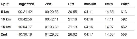 Auch schön, dass ich den Platzierungen nach zu urteilen offenbar das Tempo überdurchschnittlich gut halten konnte.