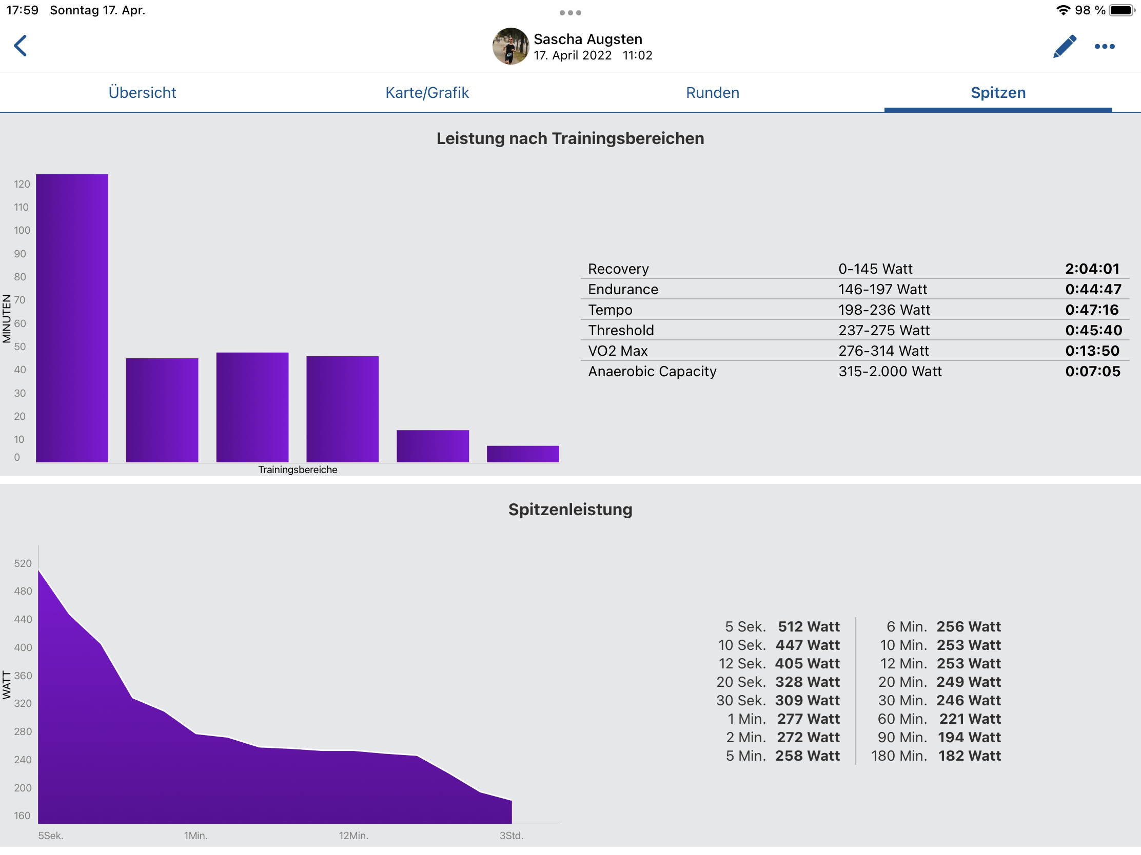 Ich bin immer mit Wattmesser und Körpergefühl gefahren. Ich war ja in einer größeren Radgruppe unterwegs, unsere schnelle Gruppe hatte immer so zwischen 9-14 Teilnehmern. Da fährst Du im flachen oder welligen selten vorne und hast massig Windschatten, so dass das sehr easy war. Insofern bin ich dann die Anstiege ( wo frei gefahren und oben gewartet wurde), schon deutlich oberhalb des Grundlagenbereiches gefahren, aber auch meistens nur „Angenehm hart“, d.h. unterhalb der FTP, weil mich das sonst im aktuellen Plan aus dem Plan oder bereits schon aus dem Trainingslager rausgehauen hätte. Und dann ist es ja auch ein Unterschied, ob der Anstieg 5 Minuten lang ist oder 50. Und über 15% ist GA1 auch extrem schwierig.Hagenthor hat geschrieben:Bei diesen Höhenmetern geht mein Herz aufWie machst du das mit dem pacing? Nimmst du dir gezielt etwas vor oder haust du einfach rein?