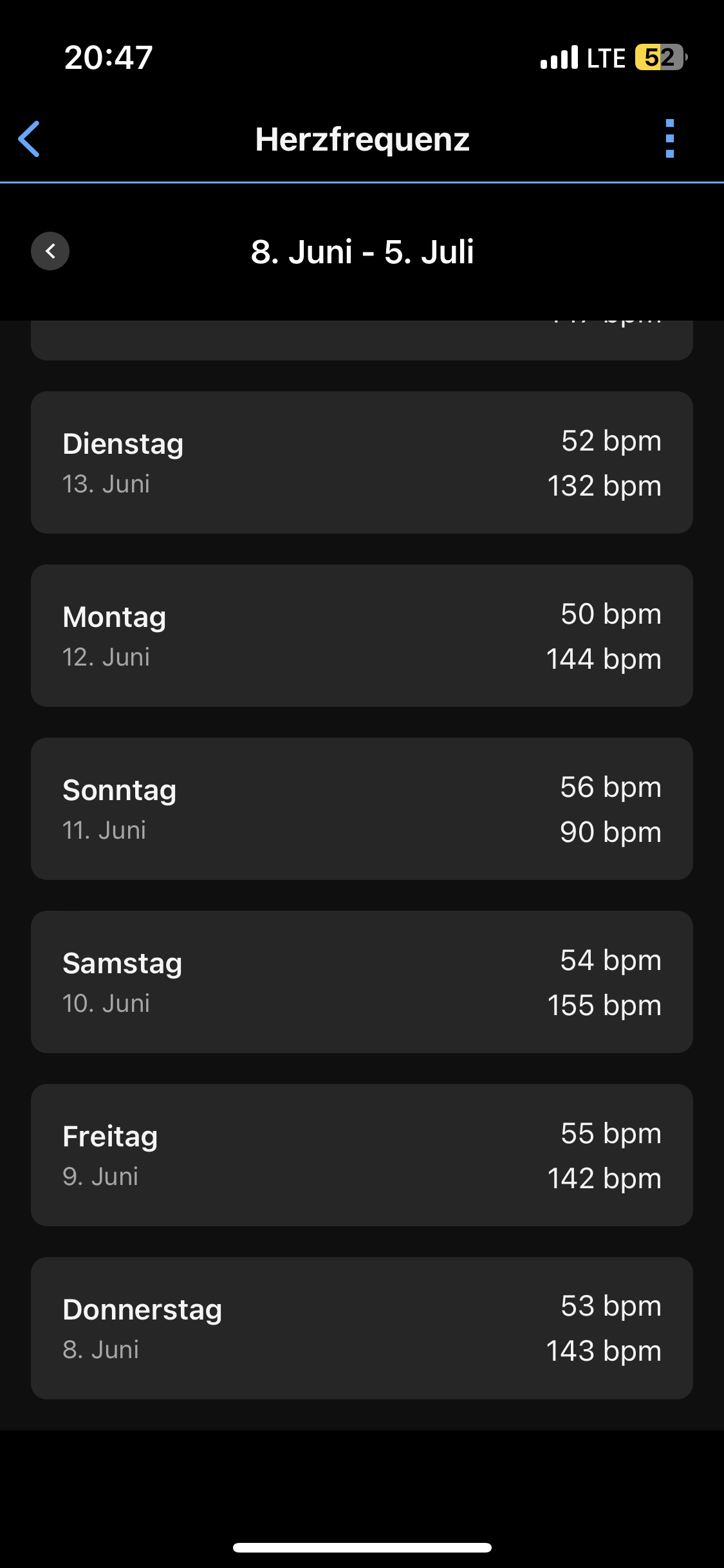 Bei mir jetzt der zweite Ruhetag hintereinander, weil ich ja immer noch schwere Beine hatte. Immerhin hat sich mittlerweile der Ruhepuls normalisiert ( Ende Juni vs. jetzt)