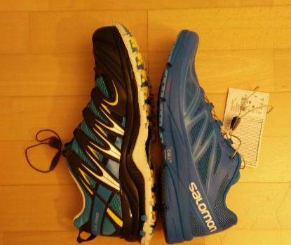 2. Schuhe fallen verglichen mit dem XA Pro des gleichen Herstellers in der gleichen Größe subjektiv deutlich kleiner aus. Ich hoffe, dass dieser Eindruck sich beim Laufen wiederlegt. Das Bild zeigt links den XA Pro in UK 9,5 und rechts den Sonic Pro in UK 9,5. Ich nehme an (und hoffe), dass der deutlich sichtbare Größenunterschied nur durch ein mehr an Schuh beim XA Pro zustande kommt, hatte aber auch beim ersten kurzen reinschlüpfen das Gefühl, dass mir der Sonic Pro ein wenig zu klein ist. Der erste Testlauf wird es zeigen.