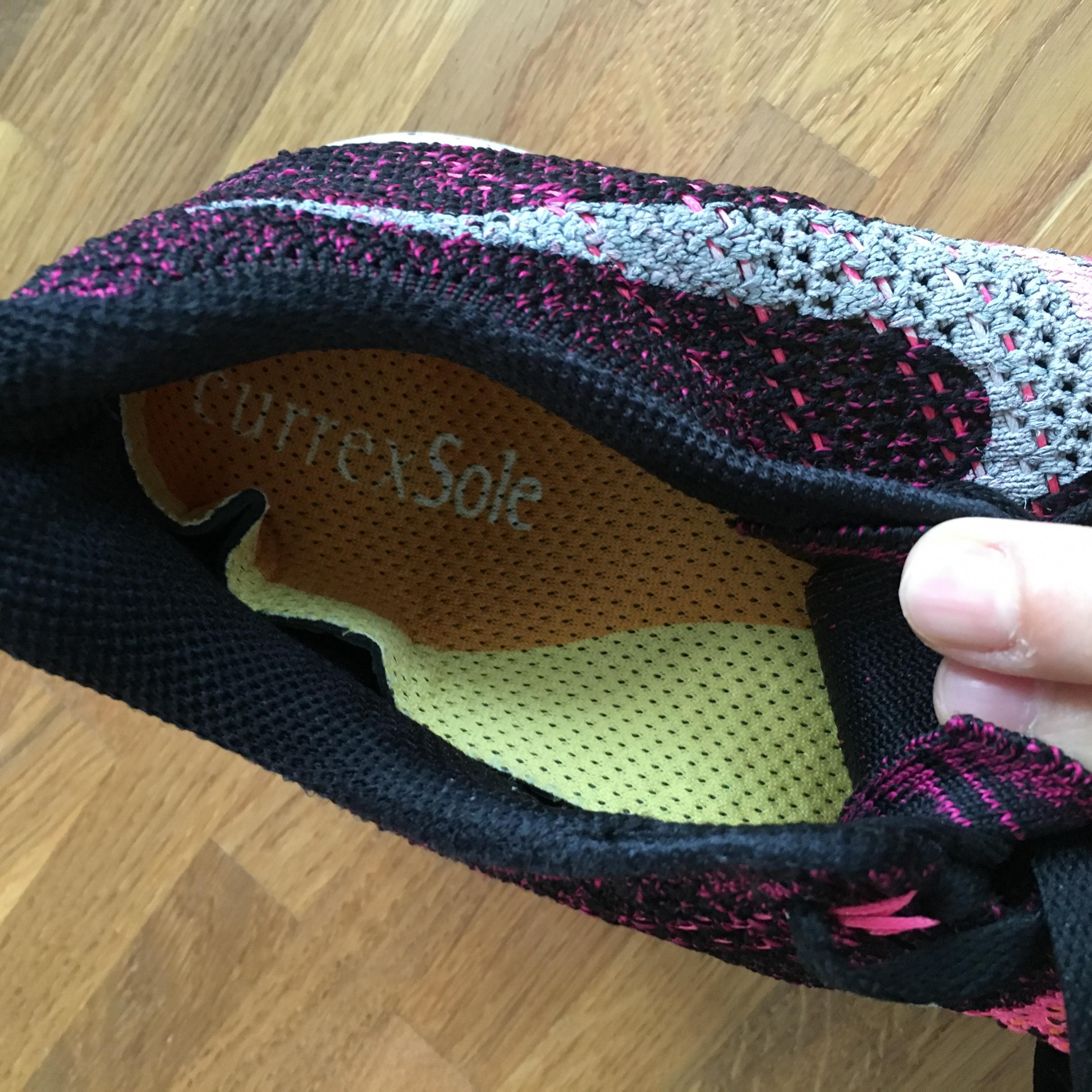 Allerdings sind die Sohlen sehr groß, ob das in meine Schuhe passt? In meinen Lieblingsschuh, den Nike Flyknit Lunar 3, passen Sie nicht rein. (siehe Bilder, da ist einfach nicht genug Platz im Schuh) In den Lunareclipe kann man die Sohlen reinstecken ich bin gespannt, ob diese Falten hinten nicht Probleme machen.