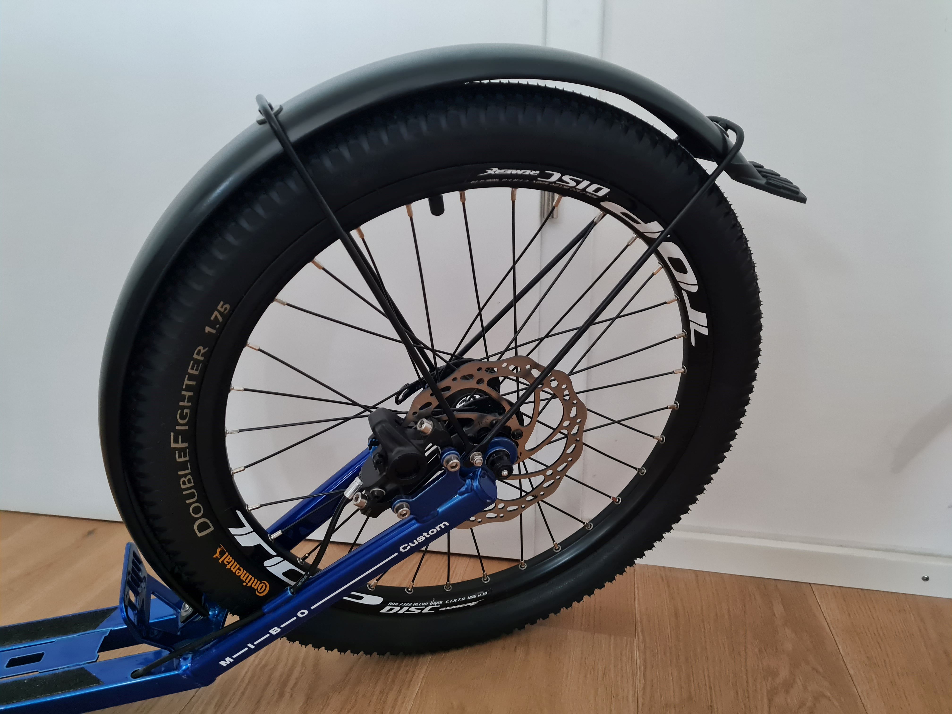 Hallo Holger , der Roller sieht wirklich sehr stark aus :daumen: Du hast Continental Double Fighter drauf , sind das Originalreifen von MIBO ? Habe ich das richtig gesehen , vorne 26x 1,9 hinten 20x1,75 ? Ich persönlich bin ja Fan von breitere Reifen , es sei denn man fährt auch Rennen . Nichtsdestotrotz , ein schöner Roller . :nick: