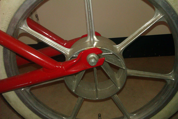 Ich habe den hier bei einem Prylbod gefunden. Der Besitzer hatte Roler und Fahrräder gesammelt und dann entweder in eine Art Museum gestellt oder gehängt. Dieser hing an der Decke und ich habe den nie bemerkt bis zum Freitag vorige Woche. Da der Mann gestorben ist verkauft seine Frau die alten Stücke und ich suche schon lange einen Roller für mich. Da ich aber nicht reich bin war ich froh den zu bekommen. Als ich aber dann im Netz schauen wollte wiviel der Roller aushält, gewichtmässig also, habe ich nichts über ihn gefunden. Das machte mich ein wenig nachdenklich zusammen mit dem Aufkleber. Jetzt getraue ich mich nicht den anzuwenden falls es ein seltenes Stück ist will man ja jemanden finden der ihn schätzt.