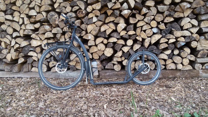 Mein erster Roller war ein Kostka-Tour-Pro mit hydraulischen Scheibenbremsen. Danach habe ich mir noch gebraucht verschiedene Roller von verschiedenen Herstellern zugelegt, einfach so als Hobby. Es macht mir Spaß die Roller in guten Zustand zu bringen und sie so auszustatten, wie es für mich optimal für den jeweiligen Einsatzbereich ist. Alle Roller sind bei mir alltags- und tourentauglich, d. h. sie bekommen einen Frontgepäckträger, Schutzbleche, Barends, Klingel, Flaschenhalter & Rückspiegel.
