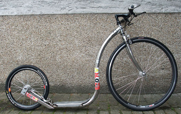 Also, der Milleniumracer ist eine Sonderedition des G3 Kickbike, Vorgänger des G4, Es hat einen verchromten Stahlrahmen. Das Hinterrad ist 16 Zoll ( 349 ), Es passt aber auch das 18er Kickbike-HR. Die Bereifung ist für schnelles Fahren auf der Straße gedacht, aber ein Feldweg oder ein unbefestigter Radweg durch den Wald geht auch.