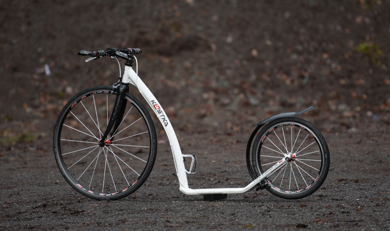 Ich verkaufe meinen Tretroller Kostka Racer Pro 3. Der Roller ist im Originalzustand. Ergänzt hab ich nur einen Spritzschutz für das Hinterrad (Eigenbau, Karbon+Kunststoff) und eine Klingel (Knog Oi) .Laufleistung genau 5000 km. Technisch ist der Roller ohne Fehler. Die Lager der Laufräder sind noch top, Seiten- und Höhenschlag der Felgen kaum messbar. Einzelne Abschürfungen am Lack und eine verschrammte Unterseite des Trittbretts sind bei der Laufleistung nicht zu vermeiden.
