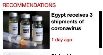 In der Vorschau-Spalte können die Überschriften wohl maximal drei zeilen lang sein. Deshalb steht dort "Egypt receives 3 shipments of coronavirus". Huch? Wenn man den Artikel aufruft, sieht man die komplette Headline "Egypt receives 3 shipments of coronavirus vaccines Sinopharm and AstraZeneca" ...