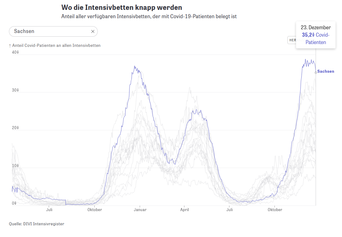 Ich nehme an, da gab es arrogante Äußerungen gegenüber der Lage in Sachsen? Selbst wenn Leipzig jetzt eine andersfarbige Insel in den Inzidenzen der Umgebung ist, die Intensivauslastung ist im Südosten und im Nordwesten unterschiedlich.