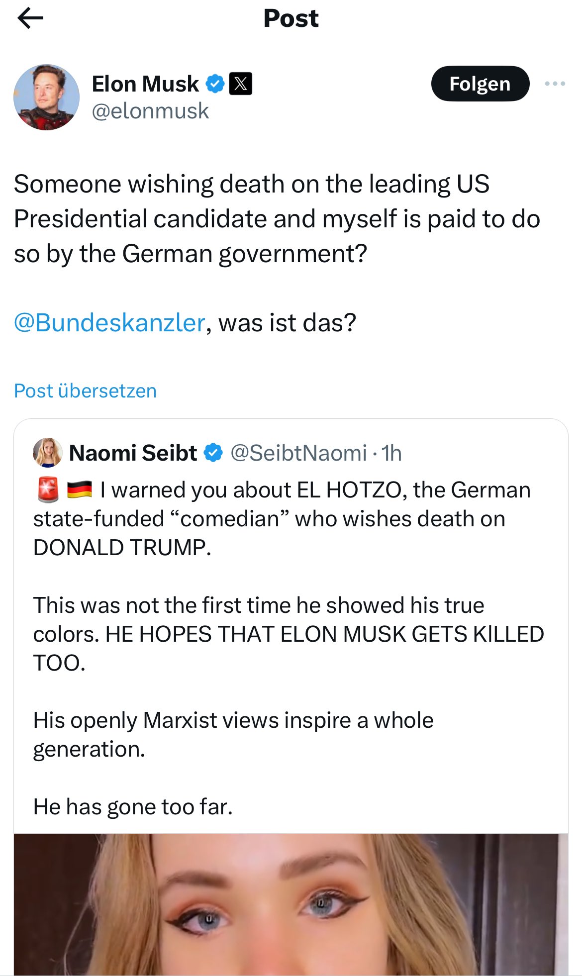 So ganz fit ist Egon aber nicht, was die sozialen Medien angeht.ruca hat geschrieben: 17.07.2024, 06:07 Hat ja geklappt, der Bundeskanzler hat den Typen wegen Elmos Eingriff jetzt ja entlassen.