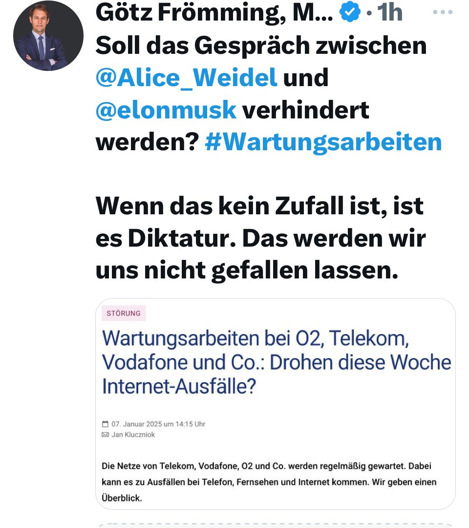 Nachdem die Wiedel mit ihrem Gestammel und Gekicher das gestern so verkackt hat: müssen jetzt nicht richtige Männer ran?ruca hat geschrieben: 10.01.2025, 04:24 Leider darf man trotzdem wählen - und das Land zerstören, um mal eine Wortwahl der AfD aufzugreifen.