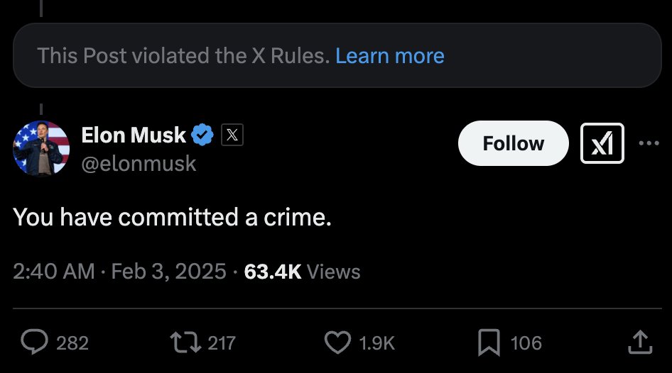 Aber wie gesagt, bekanntes Ablenkmanöver. Ablenkung zum Beispiel von der Geschichte, dass Elons Gauner illegal in die Systeme der USA eingebrochen sind.