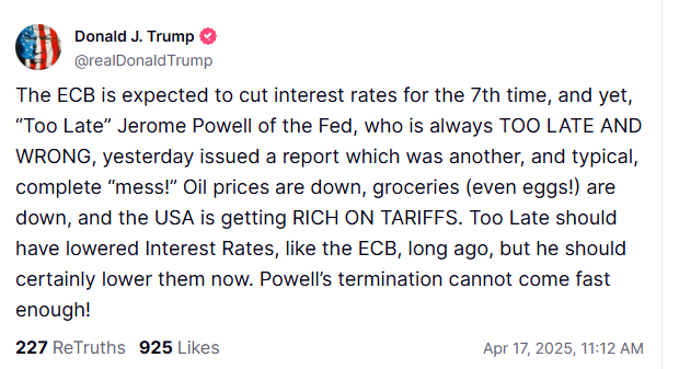 34709Aber aber aber… die Orange sagte noch heute, dass die wahnsinnigen Zölle keine Inflation auslösen und das Golden Age bevorsteht.