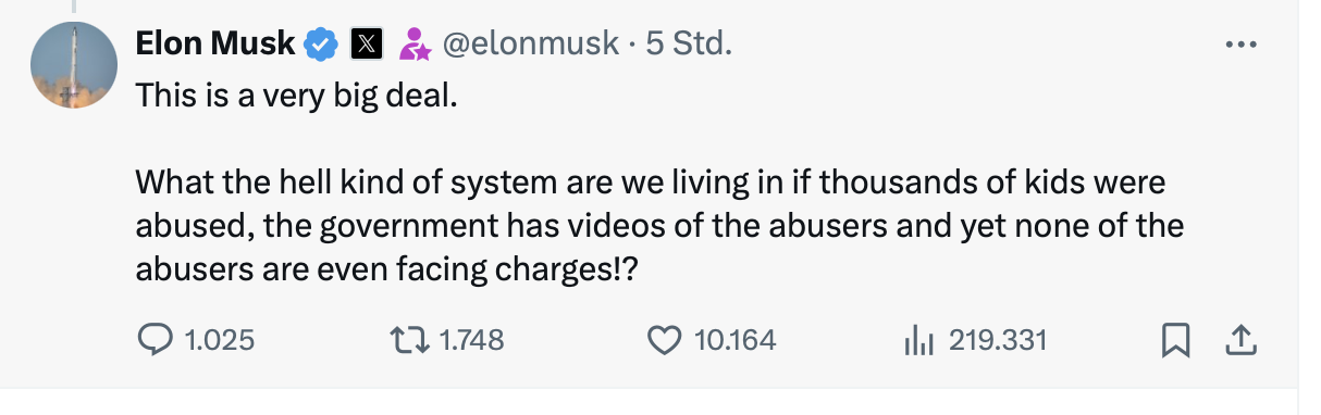 Die Geschichte, dass die Demokraten die Epstein-Files erfunden hätten und so dreist waren, die Clintons da reinzuschreiben, das kapieren nicht mal die härtesten der MAGA-Sektenmitglieder.