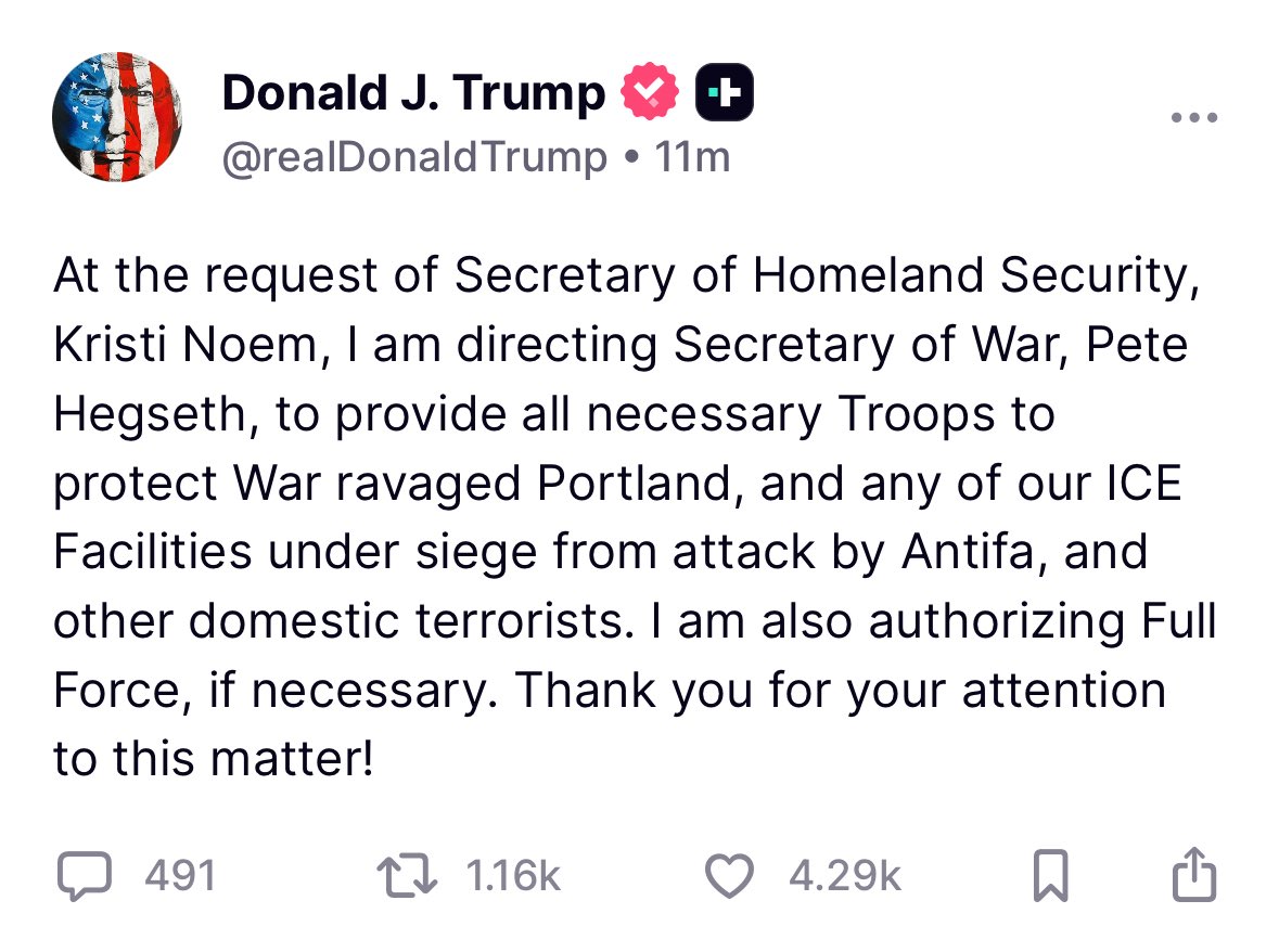 bones hat geschrieben: 28.09.2025, 22:00 Trump schrieb weiter: „DIESE EPIDEMIE DER GEWALT IN UNSEREM LAND MUSS SOFORT BEENDET WERDEN!“