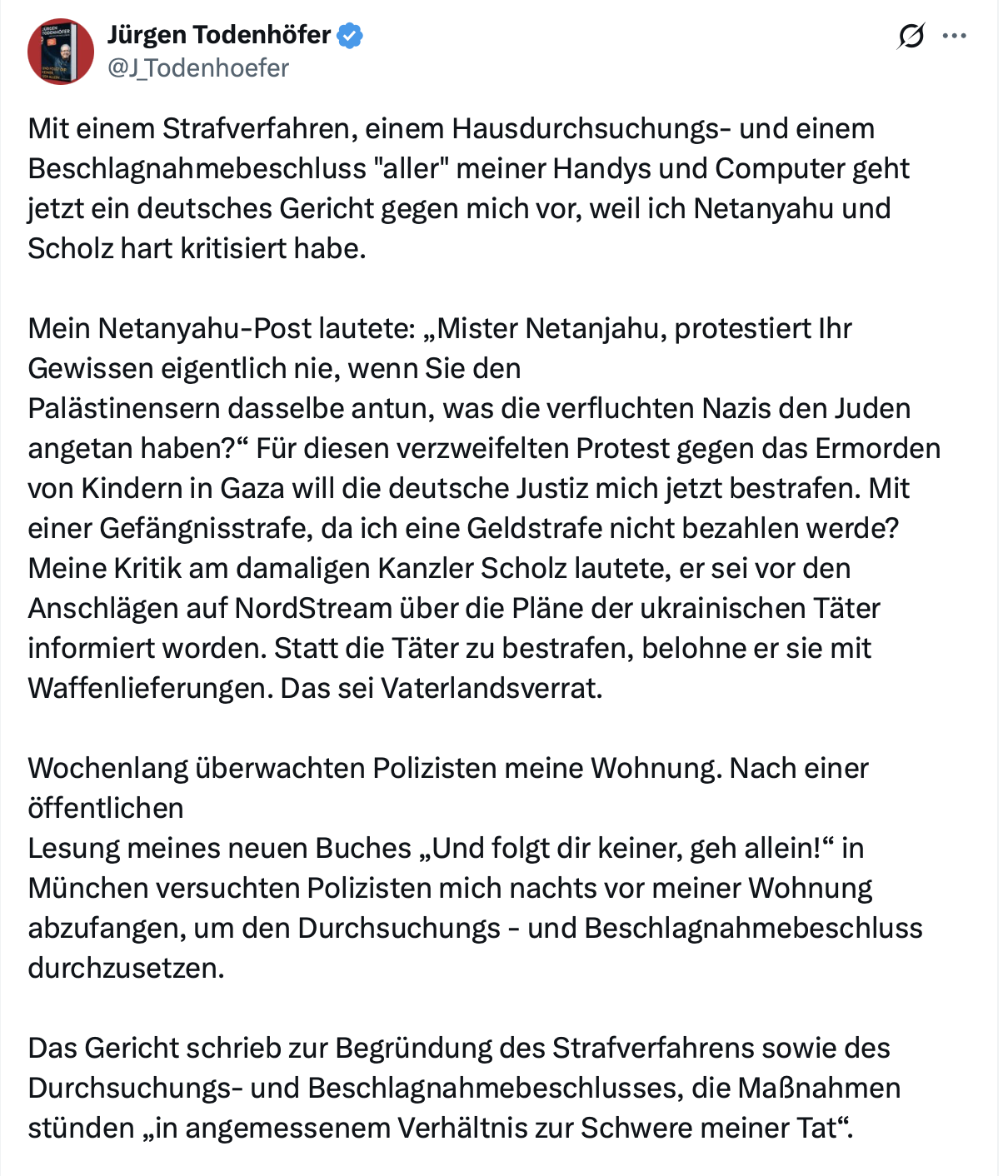 Und für die Geschichte mit Scholz wird er sich wohl irgendwas in die Richtung einer Verleumdung eingefangen haben. "Kritik" ist das im Wortsinne keine.