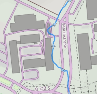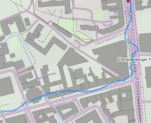 Strava-Flybys vom Berlin-Marathon vom Sonntag. Die meisten laufen durch die Passage, nur wenige verirren sich auf die andere Seite. Das ist schon signifikant. Wobei der eine lila Strich konsequent falsch ist, aber immerhin konstant.