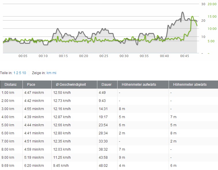 Wow, die Pace-Kurve sieht ja mal echt brauchbar aus (bis auf die letzten 3 Minuten, die nicht zur Tabelle passen)!