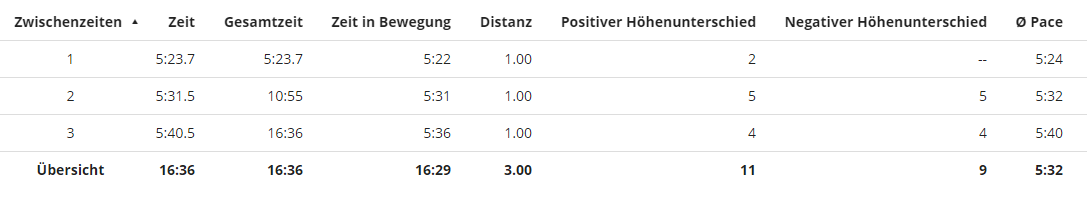 Manche Zeiten sind halt defintiv so schlecht weil ich unter anderem noch Schwimmen gehe. Also manchmal definitiv mir zu wenig Pause gebe. Auch wenn es nur 3km sind