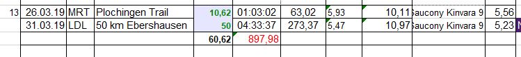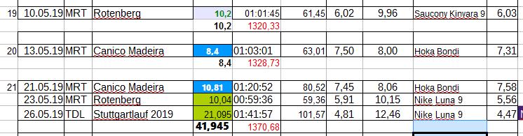 Genug Statistik. Ich hatte unter der Woche nur ein Läufle über 10 km und vorgestern den 50 km Lauf in Ebershausen. Darüber werde ich einen kleinen Laufbericht machen die nächsten Tage.