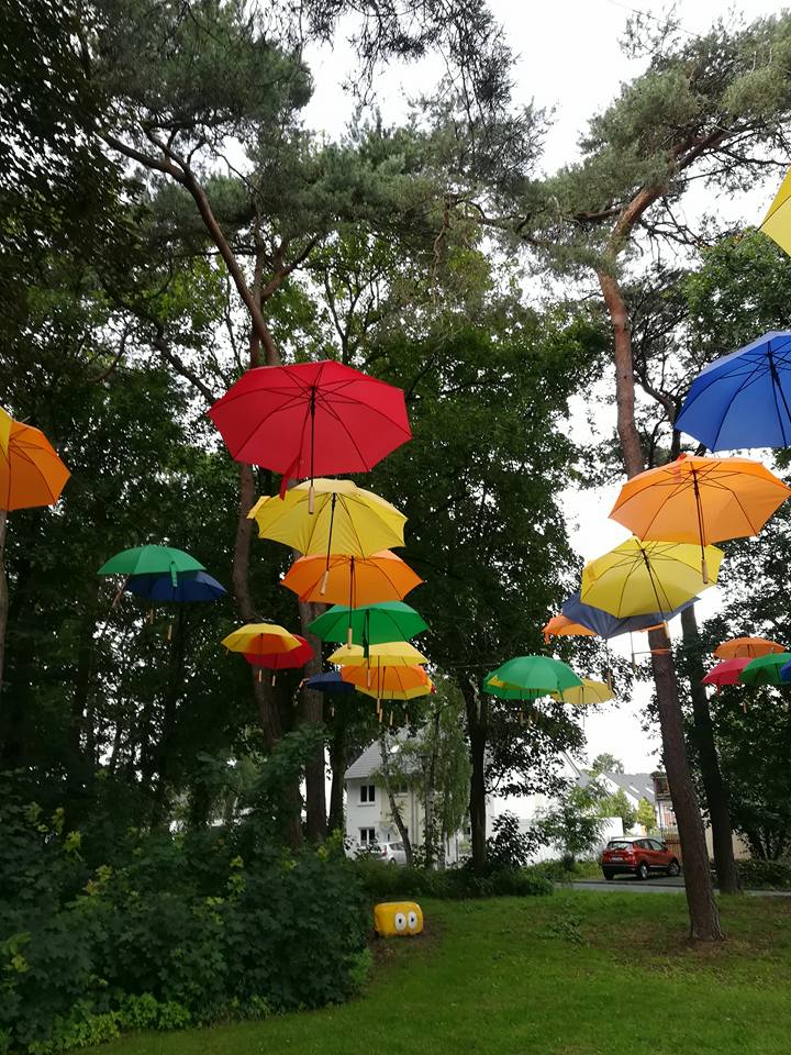 Die Todeszone hat mich heute nicht geschlagen, aber trotz langsamstem Tempo fühle ich mich doch etwas angeschlagen. Vor einem Wohnhaus in Wahn wieder eine schöne Überraschung. Privat hat jemand zwei Schüsseln mit Wasser an den Weg gestellt. Klasse, ich mache Kopf und Kappe nochmal richtig nass. Vielen Dank, das hat sehr geholfen. Danach geht es irgendwann durch ein kleines Waldstück. Ich bin soo dankbar, endlich keine Sonne, obwohl diese sich inzwischen schon stark gesenkt hat. Aber die Sonne hat nur noch genervt am Schluss. Nach dem Wald geht's noch durch Grengel. Am Ortsende ist die nächste VP, Freude.