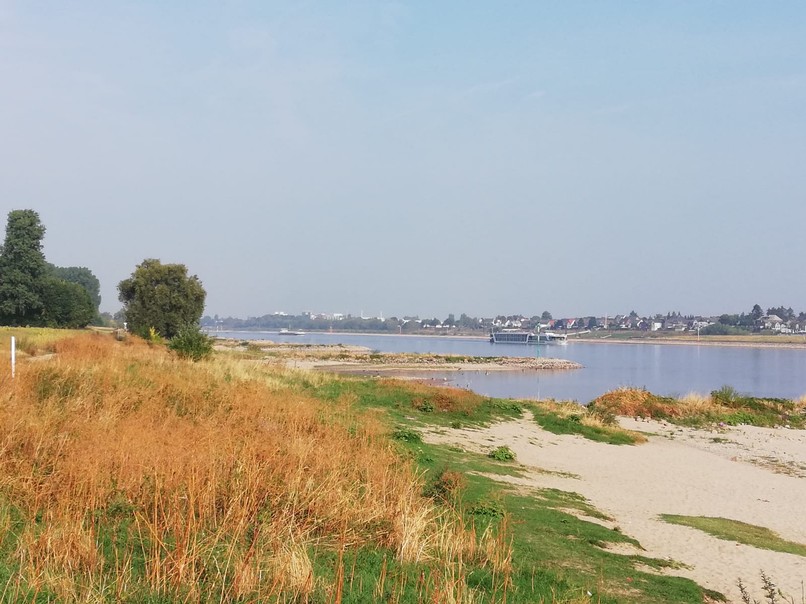 Irgendwann nach gefühlt ewig langem Weg über die Wiesen und Felder ist endlich der Rhein erreicht. Es ist für's Gefühl soo schön, endlich am Rhein zu sein, am Rhein lang zu laufen, statt über blöde Felder. Erst geht's nach Norden bis Rodenkirchen. Hier ist viel Leben und Trubel und Radfahrer und Spaziergänger. Schön unter Menschen zu sein. Über die Rodenkirchner Brücke geht es auf die andere Rheinseite und auf der Gegenseite dann wider zurück. Körperlich fühle ich mich eigentlich gut, bin ja auch sehr langsam unterwegs, nur das langsame Tempo fängt langsam an zu nerven. Aber ich bleibe dabei, langsam, viel gehen, bloß nicht zu früh zu viel Energie verpulvern.