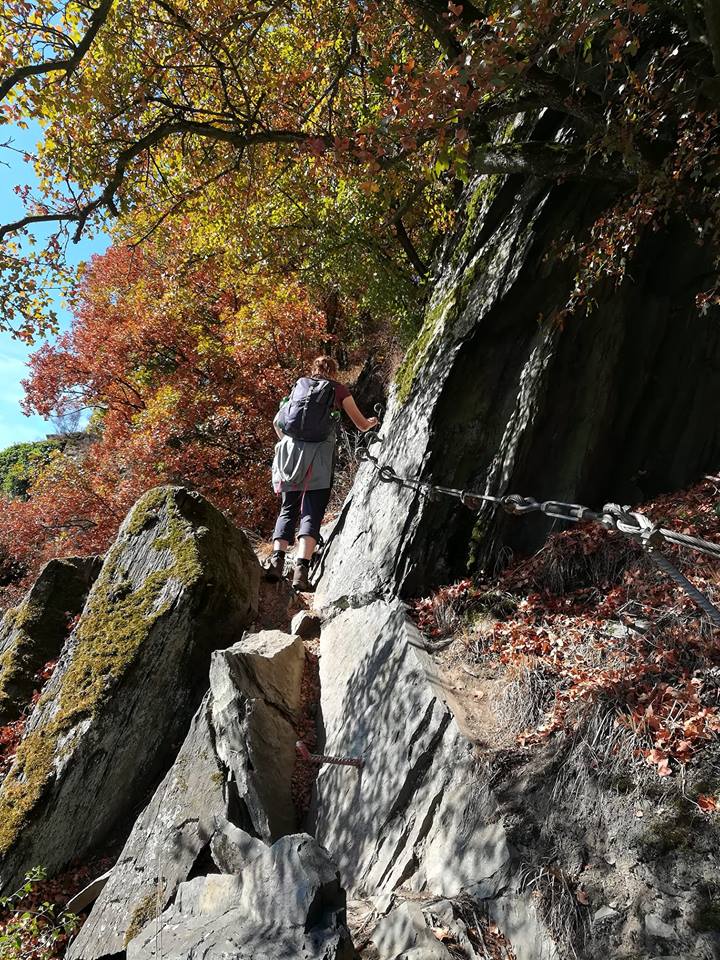 . . Im Anschluss wollten wir eigentlich noch etwas Strandurlaub an der Nordsee machen, aber leider hat das Wtter schlapp gemacht und wir sind mit der Bahn zurück gefahren und weil es südlich von Köln schönes Wetter gab, sind wir in der zweiten Woche im Oberrheintal zwischen Loreley und Bingen gewandert. Hier gibt es ja rechtsrheinisch den Rheinsteig und linksrheinische den Rheinburgenweg, beides super tolle Wanderwege, mit einigen kleinen Klettersteigen als Bonbons.