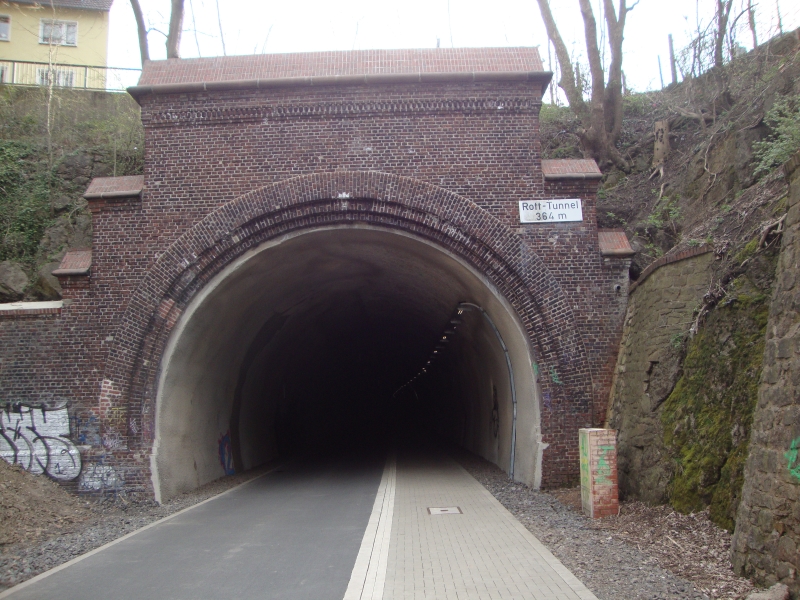 Also Streckenkarte von der WHEW-Homepage ausgedruckt und so ging es am Samstagmorgen auf nach Wuppertal. Mein Startpunkt war in Wuppertal Vohwinkel mit der Zielvorgabe: Schaun wir einfach mal, wie es so klappt, mit dem Laufen und der Streckenfindung. Letzeres war auf der ganzen Strecke kein Problem, denn der erste Teil der Strecke in Wuppertal selber und dann in Richtung Norden bis zur Ruhr verläuft über alte Bahntrassen, die inzwischen in Rad/Fußwege umfunktioniert wurden. Das ist eine ganz tolle Sache, keine Kreuzungen, keine Ampeln, dafür geht es über Brücken und durch Tunnel vorbei an den alten Bahnhöfen. Das hat mir sehr gut gefallen. Besonders die Tunnel. :daumen: