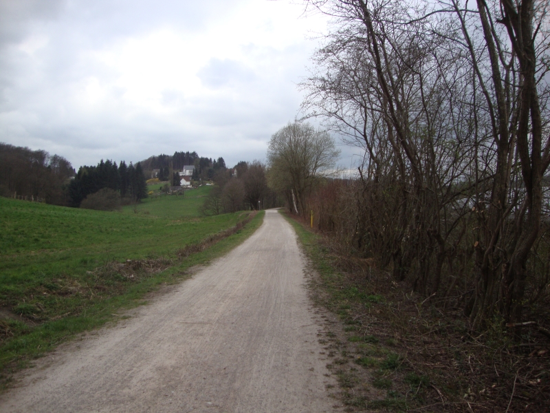 . . . Der Trassenweg ist dann aber leider zu Ende, sinnigerweise mit einem Prellbock, auf dem man genau drauf zu läuft. Das letzte Verbindungsstück in Richtung Wuppertal ist dann leider nicht so toll, streckenweise sogar etwas blöd, weil der Weg teilweise direkt neben einer Landstraße entlangt geht. Gut, eigentlich ist dieser Teil auch ganz ok, aber wenn man von der super schön ausgebauten restlichen Strecke so verwöhnt ist ...