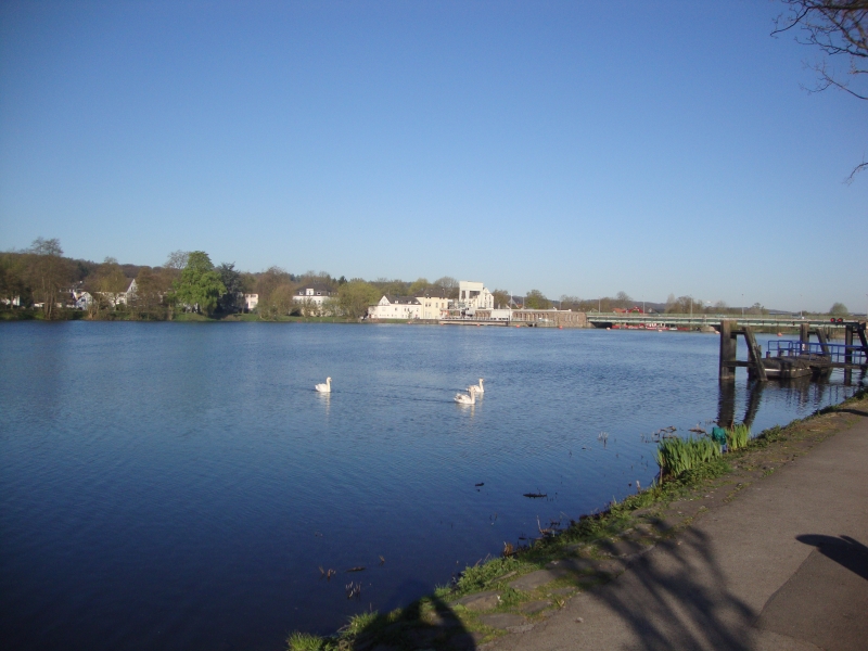 Die Ruhr wurde irgendwann breiter und zum Baldeney-Stausee, dem Naherholungsgebiet von Essen. Den Baldeneysee bin ich auf der Nordseite schon mal gelaufen, heute ging es am südlichen Ufer entlang und das sehr lang. Große Freude, juhu, als endlich die Staumauer in Sicht kam. Jetzt ist es bald geschafft, direkt dahinter in Essen-Werden sollte mein Schlusspunkt für heute sein. Am Ende standen 63 km in 8 Stunden auf dem Tacho, ich bin sehr zufrieden ...