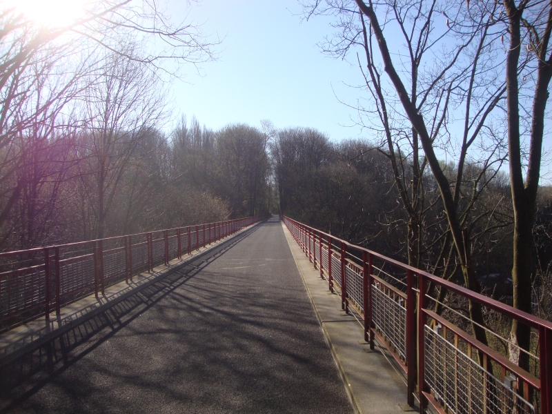 . . . . . . . . . . . Die Strecke war durchweg super zu laufen, quasi eine Hochgeschwindigkeitsstrecke für schnelle Läufer, da kann man so richtig Gas geben, wenn man's denn kann. ;-) In Wuppertal ging es zunächst über die "Nordbahntrasse" durch die ganze Stadt hindurch. Kurz vor Schwelm hat man dann das Wuppertal verlassen und es ging nach Norden über Sprockhövel und Hattingen bis zur Ruhr.