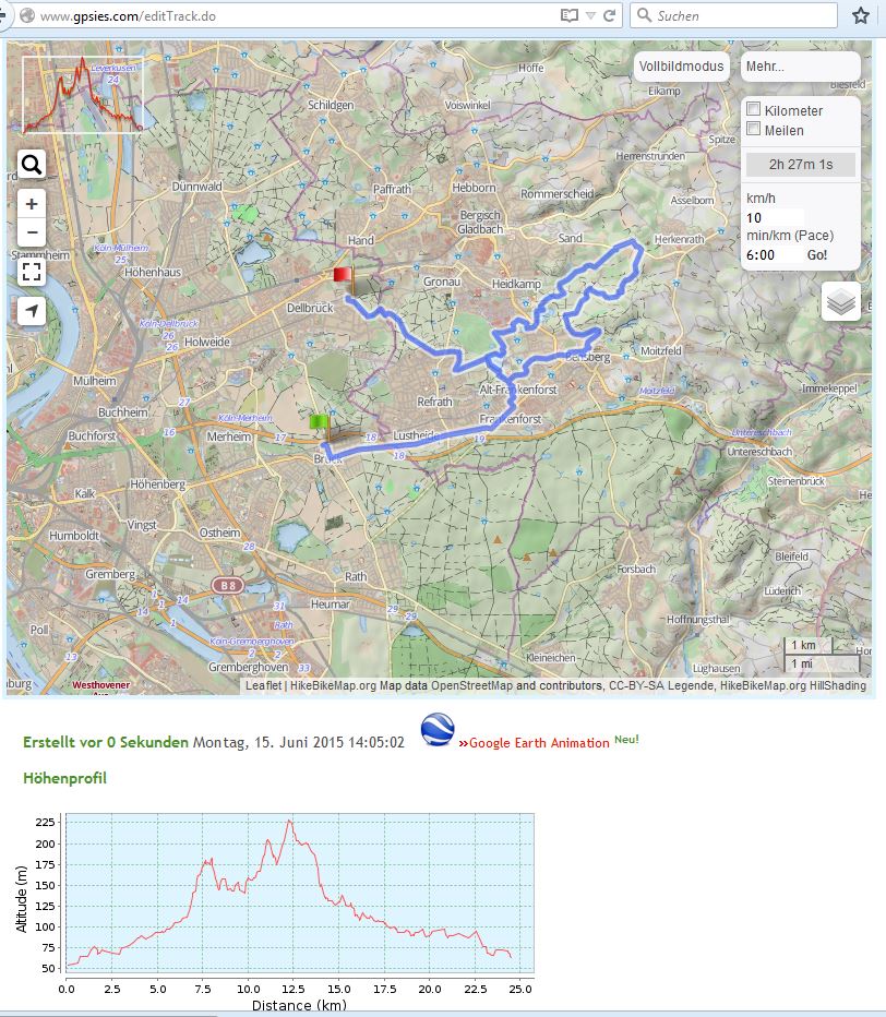 Fazit: Ich habe die Strecke im zweiten Anlauf gut gefunden und mein Gefühl "Komisch. Hier war ich noch nie! das ist total unbekannt!" stimmte an der Stelle, wo wir uns verlaufen hatten und auch vorher in Köln-Grengel, wo wir der Beschilderung richtig gefolgt sind, aber die Strecke ging da früher tatsächlich anders. Dafür habe ich den alten Weg über den Friedhof im Stockdunklen ohne Markierungen absolut todsicher gefunden.