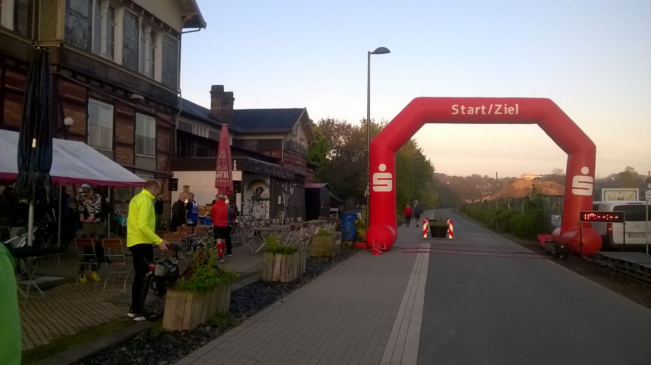 Kurz vor Hattigen ahben wir dann die Ruhr verlassen und es ging in den langen Anstieg in Richtung Sprokhövel wieder auf eine alte Bahntrasse. Endlose weite Bögen mit moderater Steigung, eigentlich noch gut laufbar, auf Dauer zermürbend, ultraspaßig halt. ;-) Hier machte es sich richtig bezahlt, dass wir uns mit Laufen abwechseln durften, so konnten wir wenigstens halbwegs unser Tempo noch halten. Den langen Berg sind die meisten Läufer auf unserer Höhe in einen Wechsel von stückweise Laufen und Gehen verfallen und viele freuten sich über ein kleines Gespräch miteinander. Irgendwann ist auch mal der längste Anstieg zu Ende, juhu, große allgemeine Freude als der Tunnel Schee in Sichtweite kam, der höchste Punkt der Strecke, 1800 Meter lang, ein klasse Gefühl durch den Tunnel zu laufen mit der Gewissheit, jetzt hat man es eigentlich geschafft, jetzt geht es nur noch runter und dann nur noch einemal durch die andere Hälfte von Wuppertal durch und dann ist es geschafft.