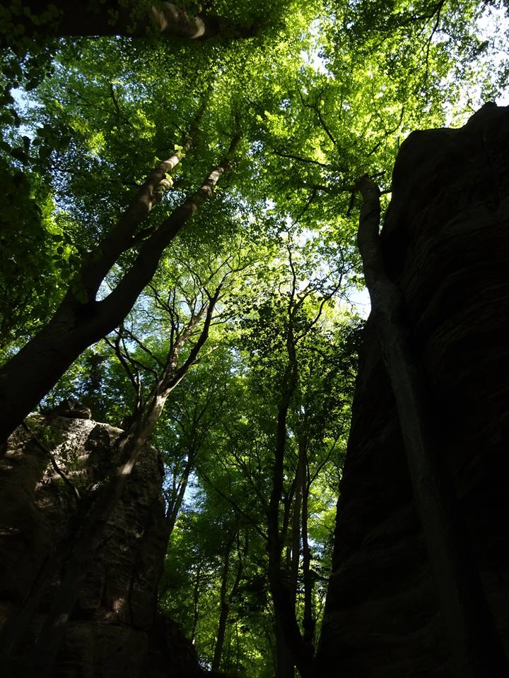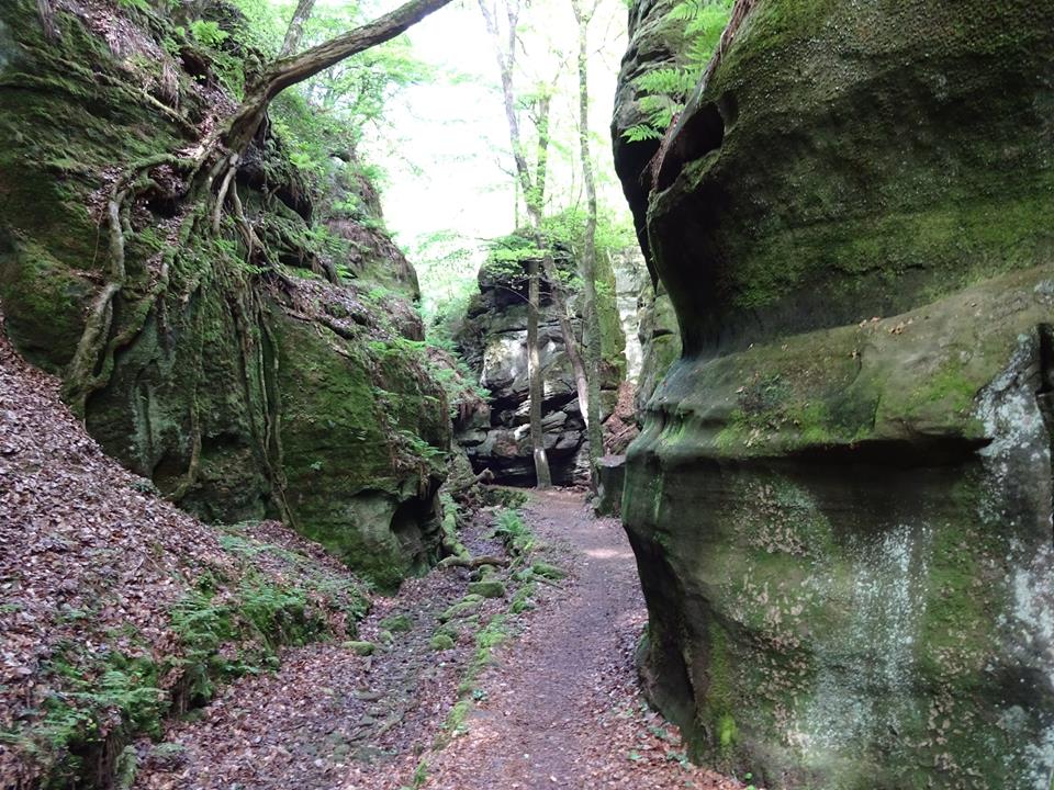Diesmal kein Lauf, aber eine wunderschöne Wanderung durch eine beeindruckende Landschaft. Das Mullerthal-Wandergebiet liegt in Luxemburgs "Kleinen Schweiz" bei Echternach. Hier gibt es eine einmalig schöne Landschaft aus bizarre Felsformationen in herrlichen alten Laubwäldern in idyllischen Bachtälern. Man selber fühlt sich klein, wenn man da durch läuft. Teilweise geht der leibevoll angelegte Wanderweg durch enge Felsspalten, gerade mal so breit, dass man noch hindurch passt, 40 cm breit und 15 m hoch rechts und links. Einfach klasse. Aber auch die unspektakuläreren Teile sind wundercshön. Die Trailrunde 2 ist gut 30 km lang, kein einziges Stück war langweilig. Wir war den ganzen Tag nur geflasht. Ich habe im Bergischen Land oder in der Eifel oder im Siebengebirge noch nichts vergleichbares gesehen. Soooooooo schön. Ein so liebevoll angelegter Wanderweg, mit Holzbrücken über die Bäche, Treppen, alles als schmale Wege wunderbar in die Natur eingebettet, durch alte naturbelassene Wälder über 30 Kilometer. Einfach alles nur schön.