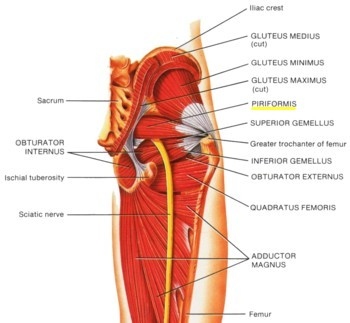 Hab mal Bild gefunden im Netz. Eines der drei kleinen Dinger unter dem Piriformis dürfte das sein. Gluteus maximus konnte ich schnell ausschließen, denn dann könnte ich nicht schmerzfrei ne Treppe hoch rennen!
