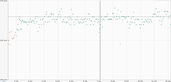 Und so lief ich einfach so weiter. Gab nichts zu meckern und von hinten die Signale wurden auch nicht stärker. Nur die Beine wurden etwas müde mit der Zeit, also musste ich ein wenig mehr Druck geben. Und das machte solchen Spaß! Musste mich schon ein klein wenig beherrschen, nicht zu überpacen. Aber etwas schneller wollte und wurde ich doch. Zehnter Kilometer mit 6:05 (da traf ich meine Freunde noch einmal und konnte mich noch einmal ausruhen