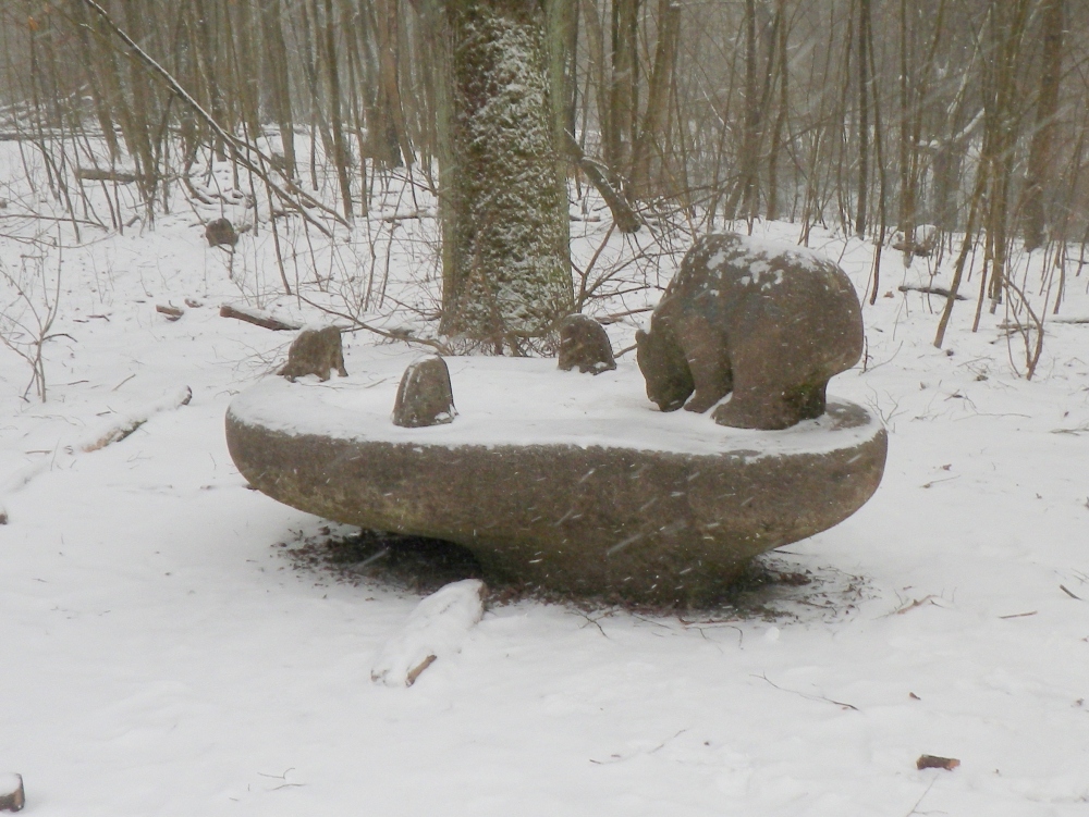 Dann hatte ich zwei Kilometer etwas Ruhe, als ich um den Drachen- und Teufelsberg herum lief. Allein der Schneematsch blieb mir.