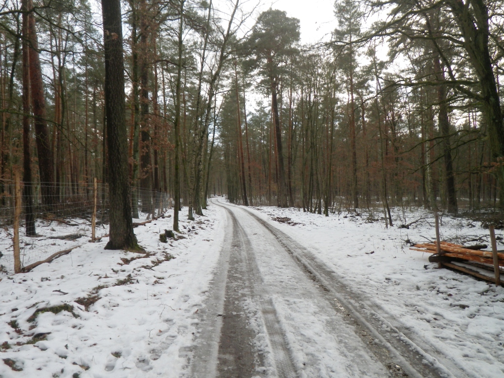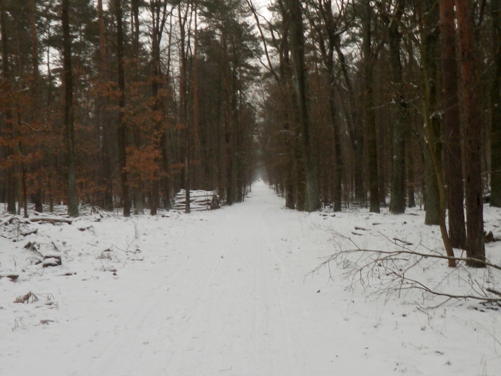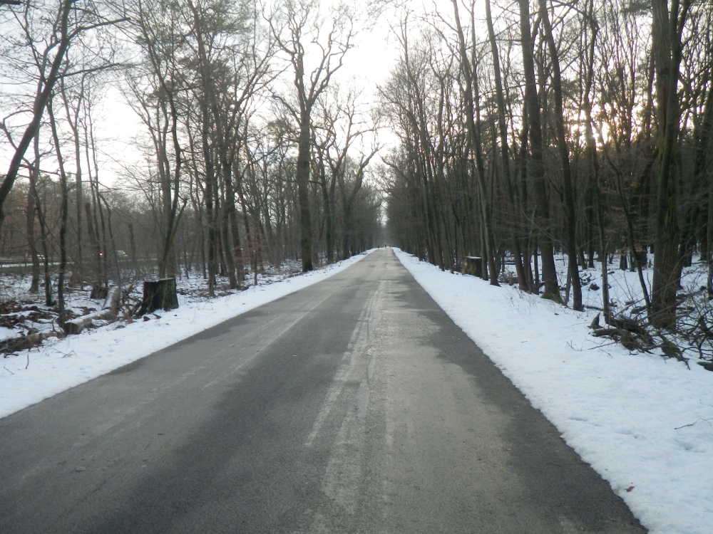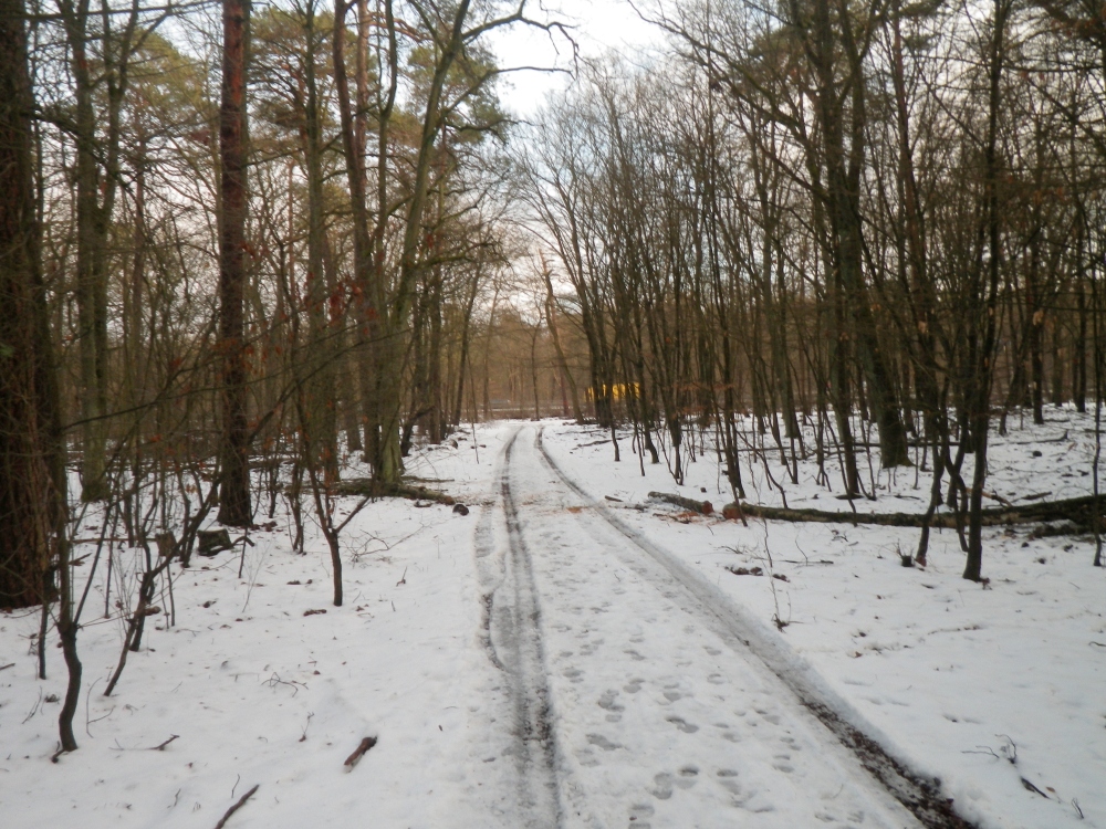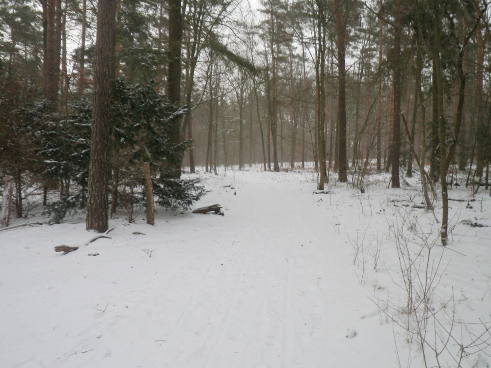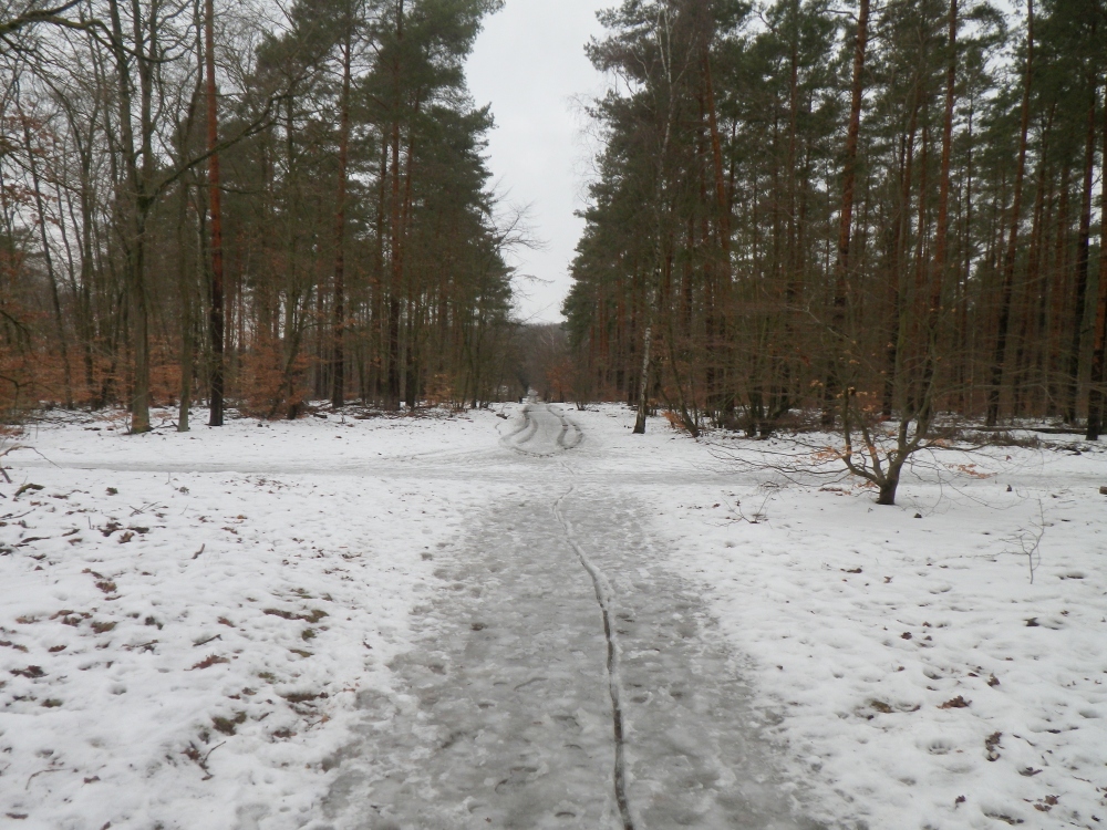 Dann hatte ich die großen Schwierigkeiten hinter und nur noch Waldautobahnen vor mir. Das stimmte mich durchaus froh, und meist, vor allem den kompletten "Schwarzen Weg" lang, hatte ich eine Autospur, in der es sich etwas besser lief, als im Schneematsch.
