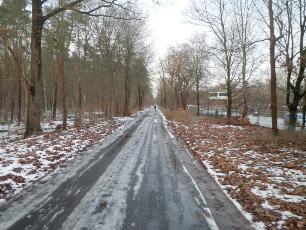 Die war komplett vom Schnee geräumt! Da fährt doch tatsächlich der Winterdienst regelmäßig lang und die ist besser als viele Nebenstraßen in der Stadt. Die BSR hat wohl ein Herz für Radler und Skater. Und natürlich auch Läufer