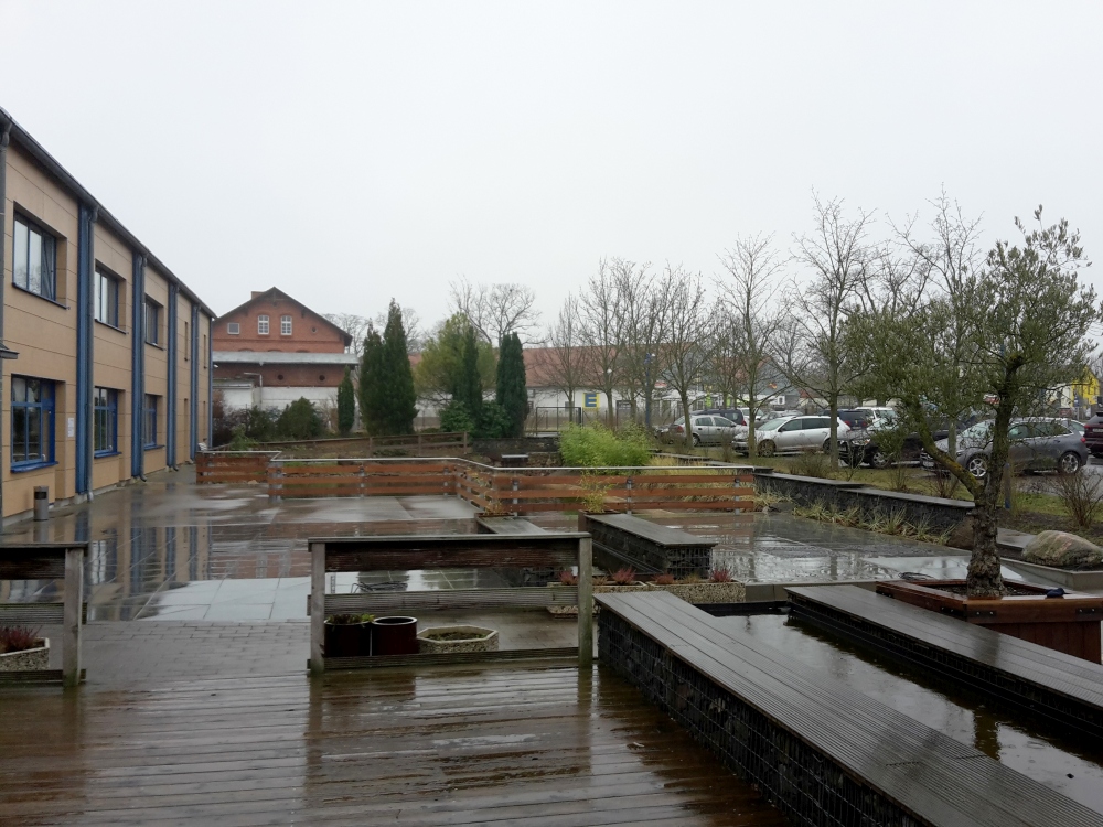 Also im schick trüben Wetter rannte ich los und lief auf der Fehrbelliner Straße auch bald an der Polizeidirektion und dem Sozialgericht von Neuruppin vorbei Und schon bald war ich in der Hauptshoppingmeile, der Karl-Marx-Straße mit dem Bernhard-Brasch-Platz, dem Alten Gymnasium und der St. Marien-Kirche Am Ende der Karl-Marx-Straße erwartete mich der Neuruppiner Bahnhof mit dem Rheinsberger Tor und etwas später die kleine St. Georg-Kapelle und nicht viel weiter verließ ich Neuruppin In Alt Ruppin fand ich die St. Nikolai-Kirche und überquerte den Rhin, den Abfluss des Ruppiner Sees Dann ging es gute zwei Kilometer geradeaus wieder nach Süden, bis ich abbiegen musste und da hatte ich doch ein kurzes Stück leichte Matschepampe :D Und schon war ich auf dem Seedamm, zurück nach Neuruppin. Mit Blick nach Rechts zur nördlichen "Hälfte" des Sees und nach Links, da konnte ich die Stadt bereits sehen. Ich lief natürlich unten, am Wasser. Was auch immer diese Skulptur zu bedeuten hat? Dann lief ich, direkt am See, an der Fontane-Therme vorbei. Mit dampfendem Wasser, dem "Bademantelgang", am See die schwimmende Sauna, von der man direkt in den kalten See hüpfen kann und dem angeschlossenen Hotel. Eigentlich wollten wir hier ein Zimmer, haben uns aber zu spät gekümmert und was nichts mehr zu bekommen. Lustige Skulptur "Parzival am See" und anschließend die Seepromenade Wer hat den Nagel da rein gekloppt? :hihi: Und noch ein Blick über den See, ehe ich zurück zum Sportcenter komme Letzen Endes waren wir froh, wieder hier gelandet zu sein. In der Fontane-Therme hätten wir nur Therme und Sauna gehabt. Hier im Sportcenter konnten wir ebenfalls saunieren, aber eben auch noch viel mehr anstellen. Und die Zimmer sind schick und für das Gläschen zwischendurch gibt es eine "Kamin"-Ecke :) Ein paar mehr Eindrücke gibt es in der Wochenabrechnung.