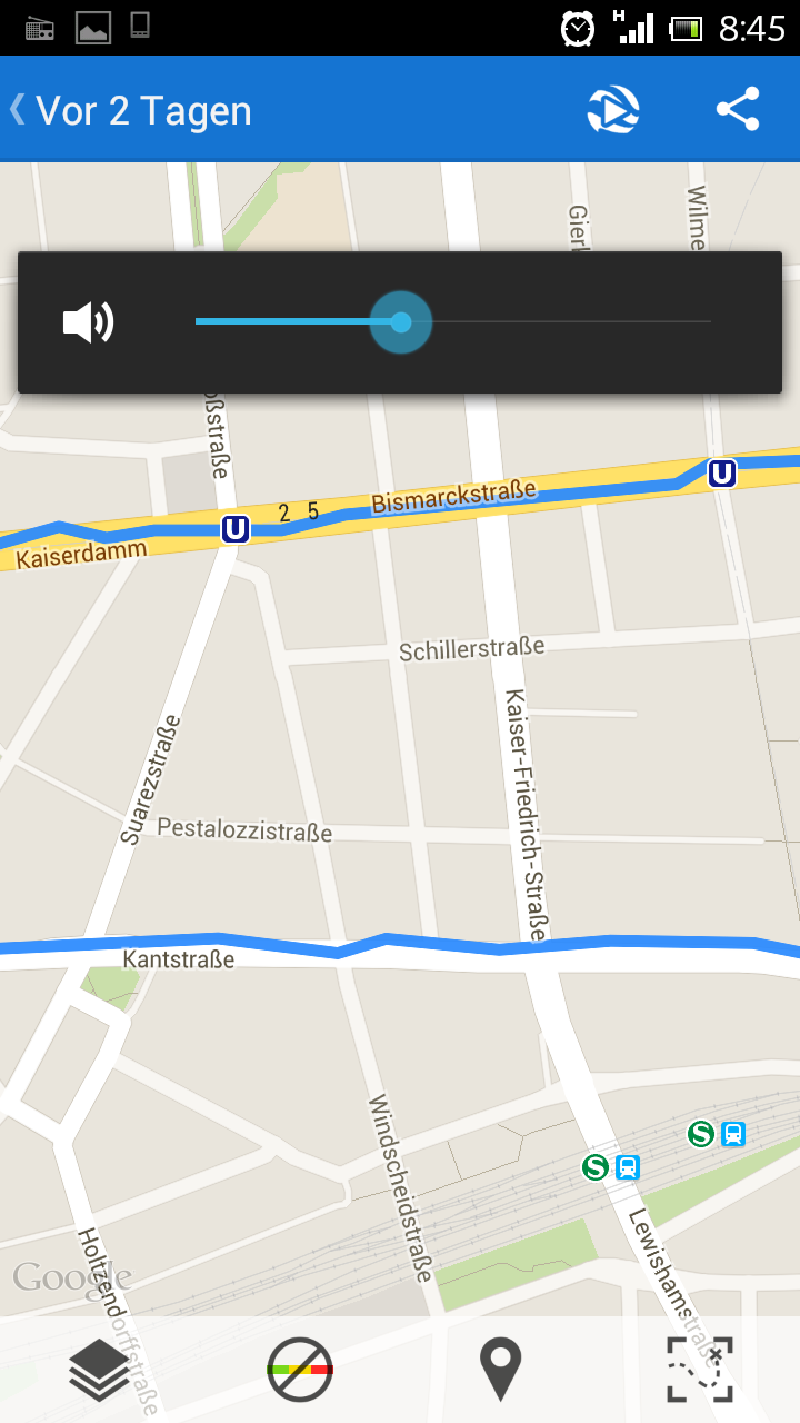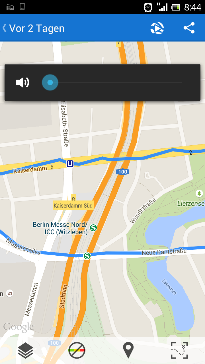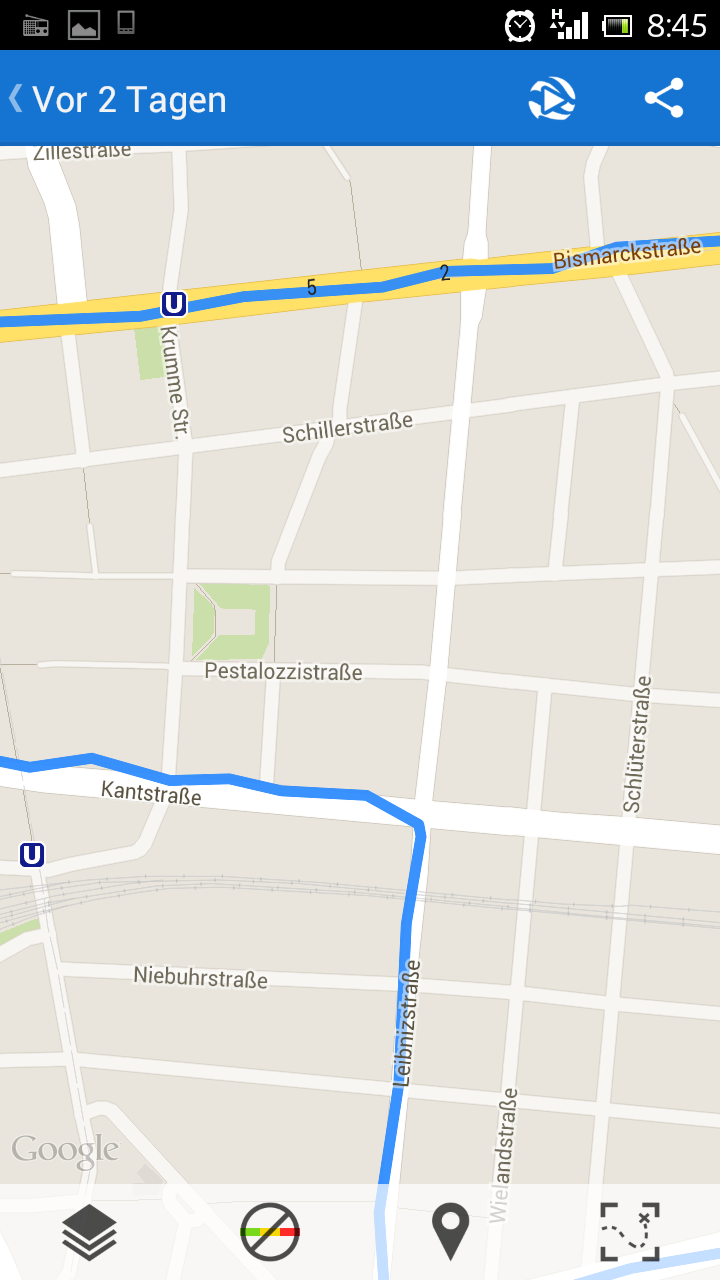 So sieht das bei mir normalerweise auch aus, diesmal aber noch viel schlimmer. Auf dem Kaiserdamm müsste ich quasi ständig von einer Straßenseite zur anderen gependelt sein. Dabei ist da so viel Platz, dass ich GPS-Probleme nicht unbedingt erwartet hätte. Bei meiner App gibt es eine Filterung/Mittelung von mehreren Positionen. Vielleicht ist die für Strecken, wo es sehr lange geradeaus geht, nicht stark genug eingestellt. Bei abwechslungsreicheren Strecken würde die aber bei einer strengeren Filterung sämtliche Kurven einfach wegschneiden, insofern gibt es da keine allgemein passende Einstellung. Müsste ich mal mit experimentieren...