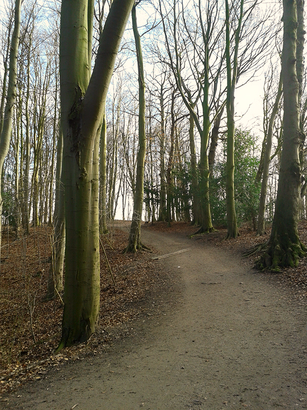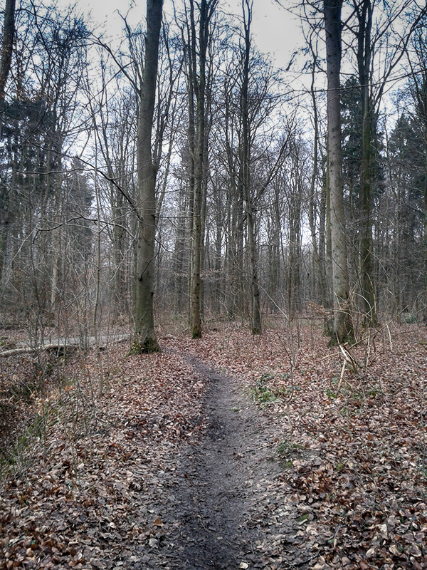 Auch wenn ich zu Beginn echt Motivationsprobleme hatte - zum Beweis habe ich einfach mal den grauen Himmel fotografiert, den ich hier fast täglich sehe. Wenigstens im Gehölz war es etwas schöner. Ich kann mich halt noch immer für die Waldwege begeistern.