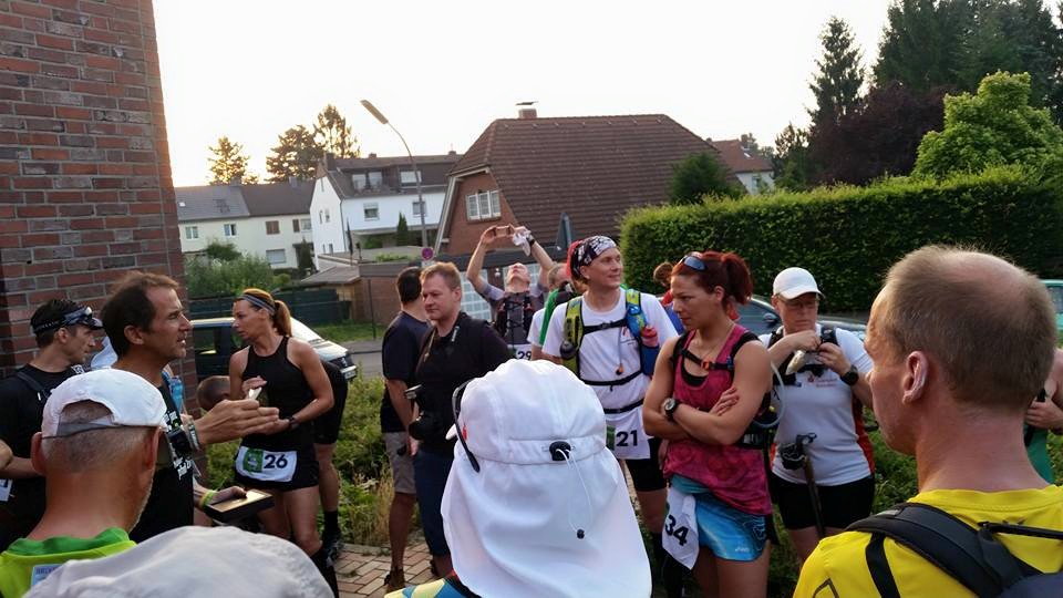 Ich kam mit einigen Teilnehmern ins Gespräch und war erst sehr spät im Bett. Vielleicht hätte ich früher schlafen gehen sollen, aber wann trifft man schon auf solche faszinierenden Menschen? Ich kam mit einem sehr netten Pärchen ins Gespräch: Ricarda Bethke und Jens Vieler, zwei große Namen, wie ich später erfuhr. Beide haben schon unzählige krasse Läufe bestritten, die alle aufzuzählen würde den Rahmen sprengen. Eine kleine Kostprobe: Er ist Veranstalter der Tortour de Ruhr und Badwater Finisher, sie wird in 3 Wochen beim Badwater starten und wollte den Kölnpfad als Trainingsläufchen mitnehmen. Es war einfach zu spannend, ihren Geschichten und Erlebnissen zu lauschen. Viele grandiose Läufer.. ob Spartathlon-Finisher/innen, Wibolt Finisher (320km), 520km Etappenläuferinnen quer durch Australien und und und… Wahnsinn. Sogar die Weltmeisterin im 10fach Ironman Susanne Beisenherz war unter den Läufern. Und Klein-Lilly zwischen dem Who is Who der Ultraszene völlig blauäugig mittendrin. In welcher Sportart außer Laufen kommt man schon mit solchen grandiosen Sportlern zusammen? Und niemand hat schräg geguckt, mir abgeraten oder ist auch nur annähernd überheblich aufgetreten.  Alle waren unglaublich nett und begeistert, dass mich das Thema Ultra interessiert und ich den Versuch starte, auf diese Art & Weise reinzuschnuppern. Als ich abends im Mädchen-Waschraum der Turnhalle zähneputzend zwischen einer Badwater- und einer Spartathlonläuferin stand, kamen mir dennoch leichte Zweifel, ob ich nicht völlig irre bin, hier mitzumachen zu wollen. Aber hey..  für mich war es nur ein Testballon, schauen wie weit ich komme. Irre bin ich nicht, wirklich irre sind die, die ernsthaft bei angekündigten 40 Grad morgen die vollen 171km laufen wollen!